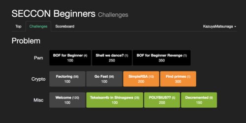もう3週間前のことだけど、SECCON Beginners 2018東京というCTF初心者向けのイベントに参加してきました. 2018.seccon.jp 自分が所属している研究室の先輩に「こういうイベントあるけど、興味あったら参加してみなよ」的なことを言われ、元々ハッキングと…